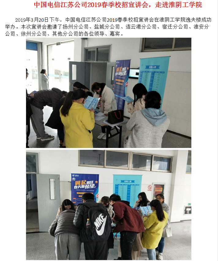 繼2019年春招及宣講活動等由贏夏人力旗下淮安人才熱線成功承辦之后,2020年中國電信股份有限公司江蘇分公司淮安公司春季校園招聘工作繼續交由贏夏人力代理。