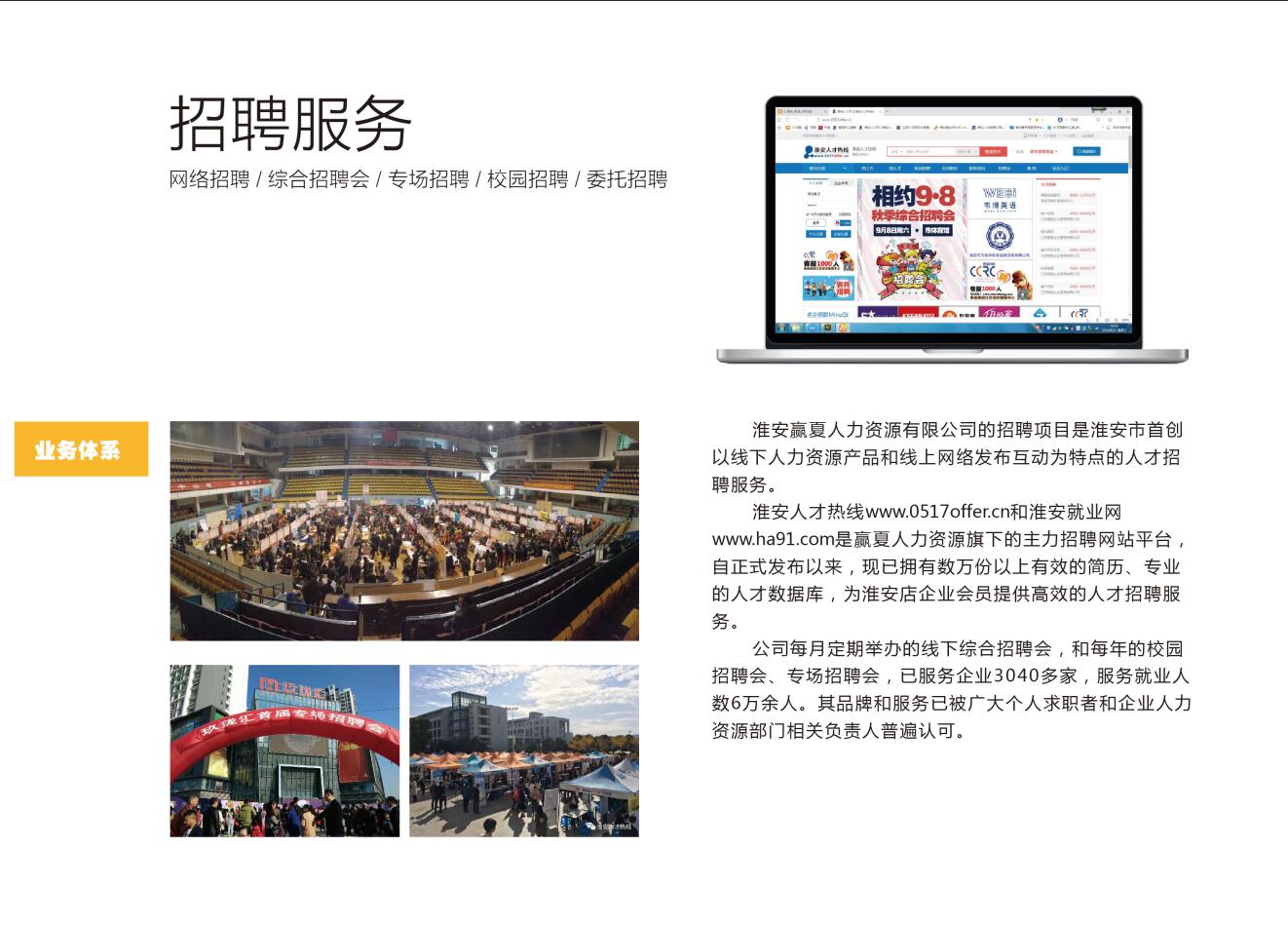 淮安贏夏人力資源有限公司的招聘項目是淮安市首創以線下人力資源產品和線上網絡發布互動為特點的人才招聘服務。
